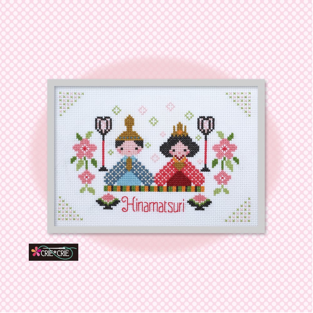 #おひなさまのクロスステッチ #ひな祭りの刺しゅうフレーム #CRIE*CRIE #クリエクリエ #かわいいおひな様 #季節の刺しゅう #春の刺しゅう #お雛様のクロスステッチ #HINAMATSURI